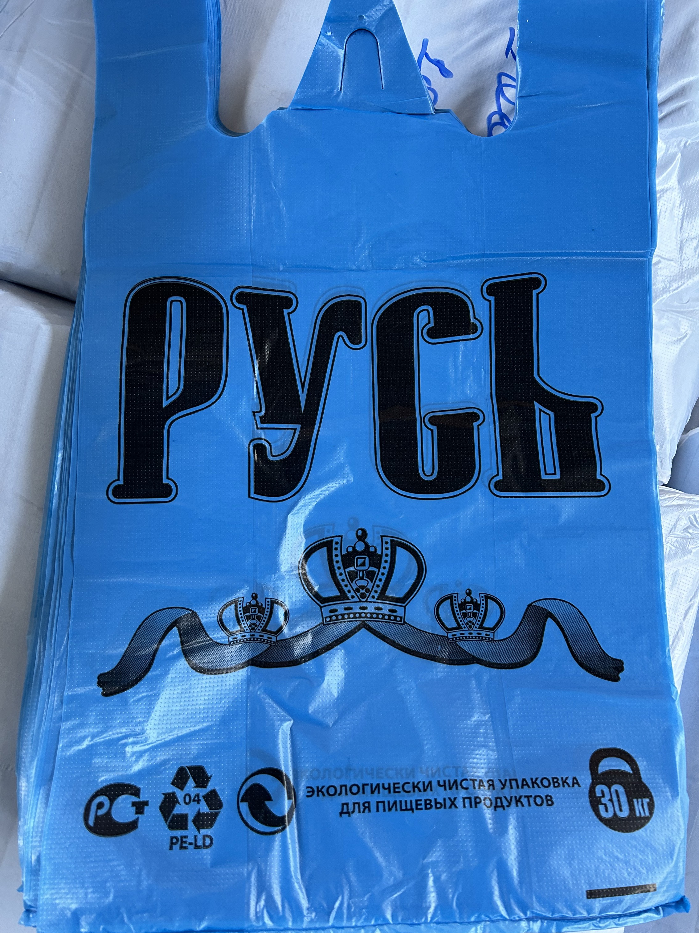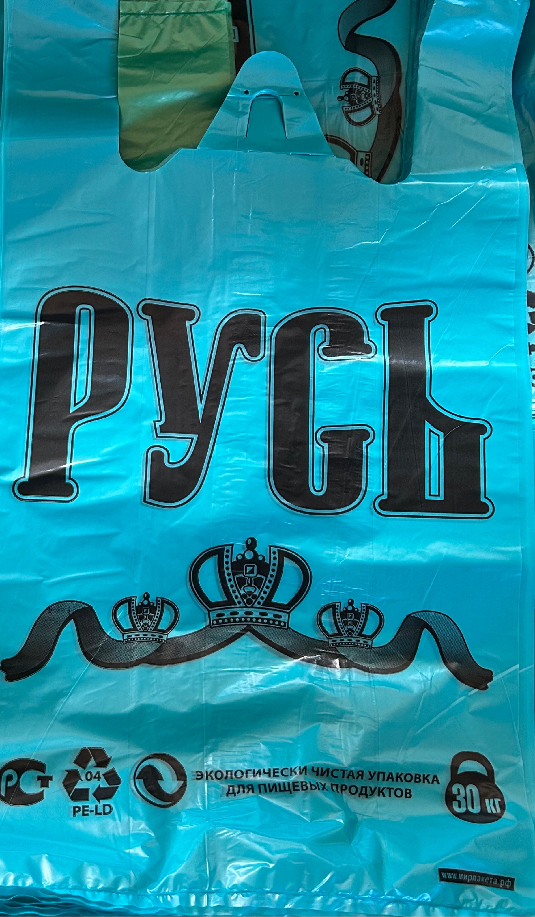 Пакет майка РУСЬ - Приобретите пакеты майки РУСЬ для удобной и надежной упаковки товаров! Размер 32х55см. и вес всего 10 грамм делают его легким и компактным. Упаковка из 1000 штук обеспечит вам достаточное количество для вашего бизнеса. Выбирайте из трех ярких цветов: синий, зелёный, бирюзовый. И все это по выгодной цене - всего за 1.75 рублей! Надежная упаковка от Мирпакета.рф- выбор успешных предпринимателей!